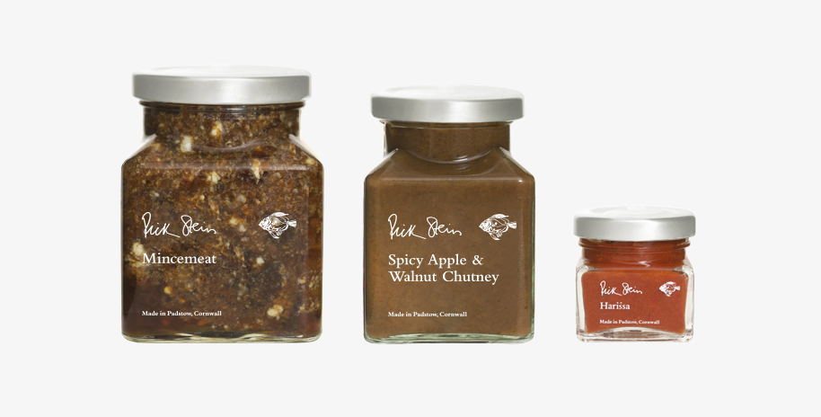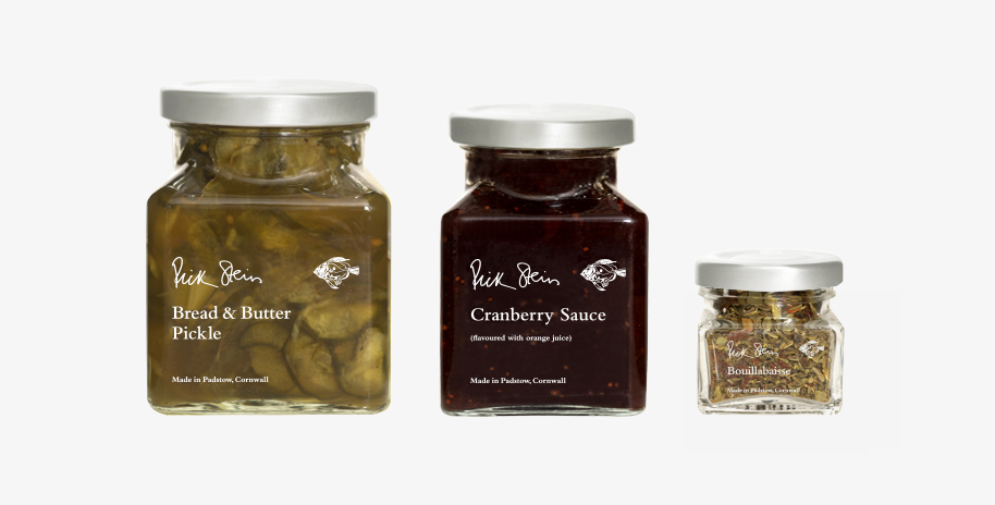 Rick Stein is an award-winning chef with an international reputation. The Seafood Restaurant required the redesign of his Deli range packaging, originally comprising of 30 products which includes, Chutneys, Relishes, Jams, Spice mixes and Oils.