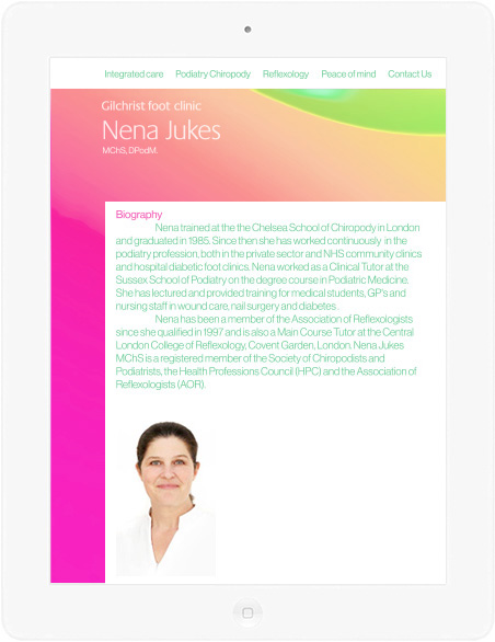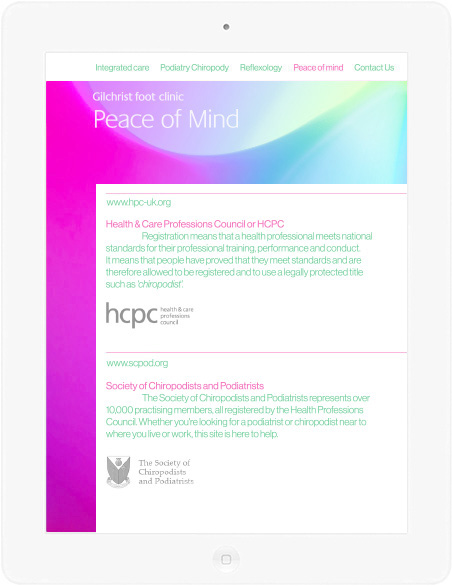 that works in the areas of Podiatry, Chiropody and Reflexology. They required an identity and design language that specifically distinguishes itself from